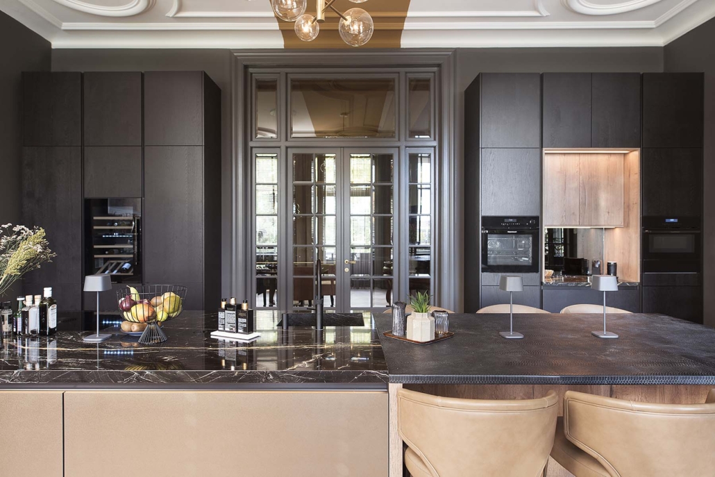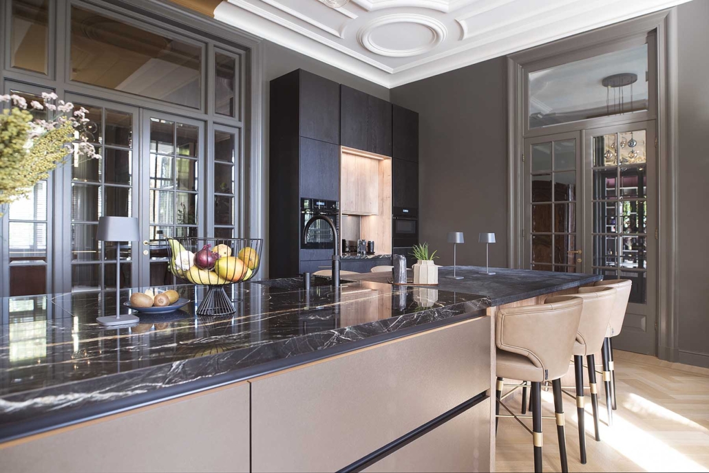 In een riante villa in Voorburg realiseerde Kitchenstudio in 2021 een zwarte keuken met eiland. Het ontwerp en de volledige materiaalkeuze zijn afkomstig van Patricia Cheung van PLAN2000. Kitchenstudio verzorgde de technische uitwerking, de plaatsing en de afwerking. De keuken staat in een klassiek interieur en is opgebouwd uit rijke materialen die samen een helder geheel vormen.