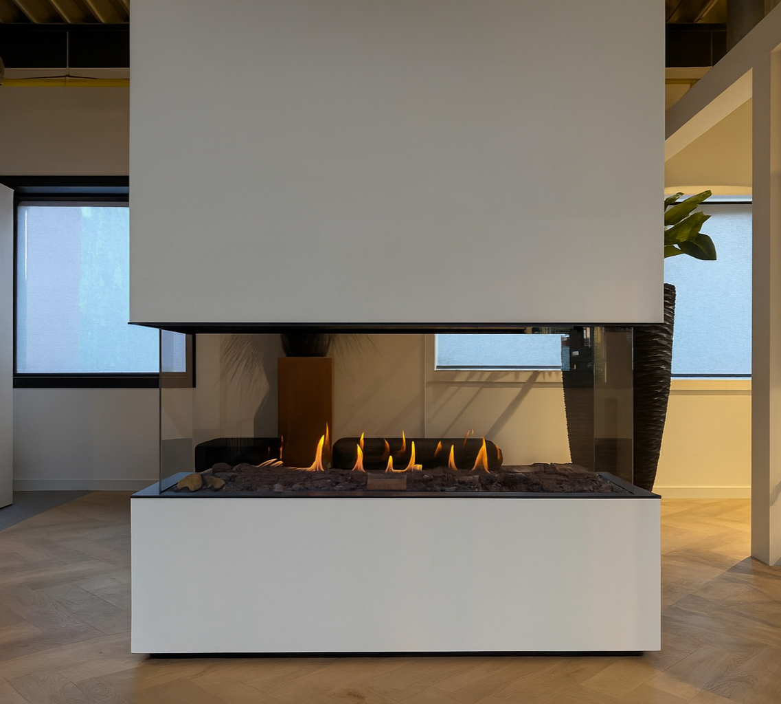Extra brede bio-ethanolhaard met vuurzicht vanuit alle zijdes.
