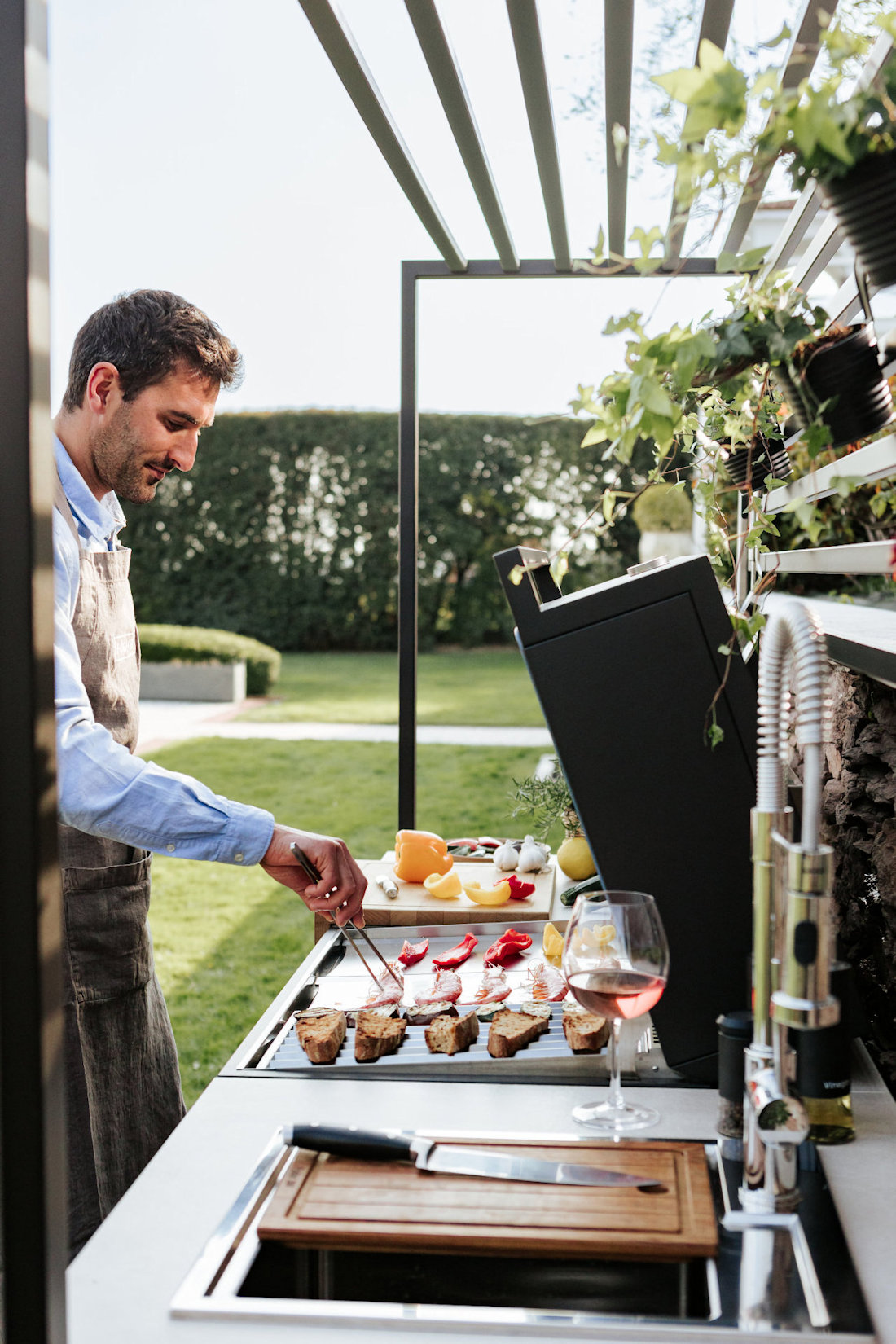 Stel zelf de ideale buitenkeuken samen, dankzij de veelzijdigheid van de modules wordt het mogelijk om een uiterst functionele en complete buitenkeuken te creëren, met kooksystemen, apparaten en accessoires die aan elke culinaire behoefte voldoen.