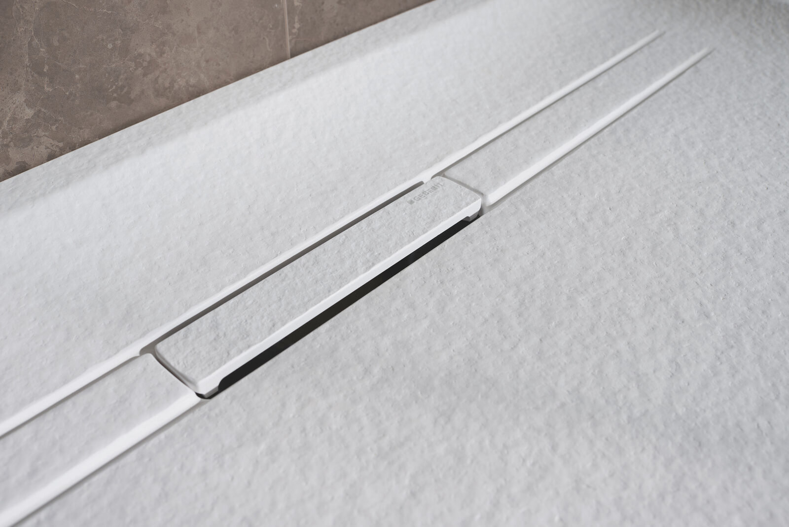 Voor iedereen die houdt van mooie en ook praktische materialen, biedt Geberit de Sestra douchevloer met een unieke zichtbare en voelbare leisteenstructuur. De douchevloer bestaat uit massief steenhars. Dit voelt comfortabel warm aan en is, mede dankzij het profiel, buitengewoon antislip.