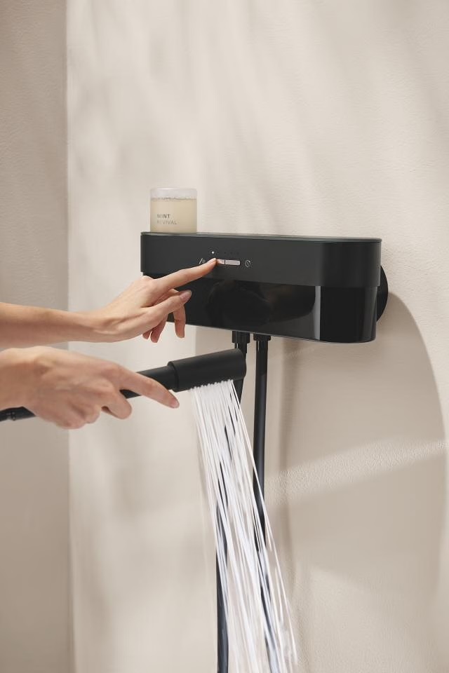 Met de GROHE SmartControl Purefoam verandert douchen in een moment om naar uit te kijken. Dit inbouwsysteem in Phantom Black, een matte zwarte afwerking, voelt modern en rustig tegelijk. Het ontwerp is strak, de techniek doet stilletjes z’n werk op de achtergrond.