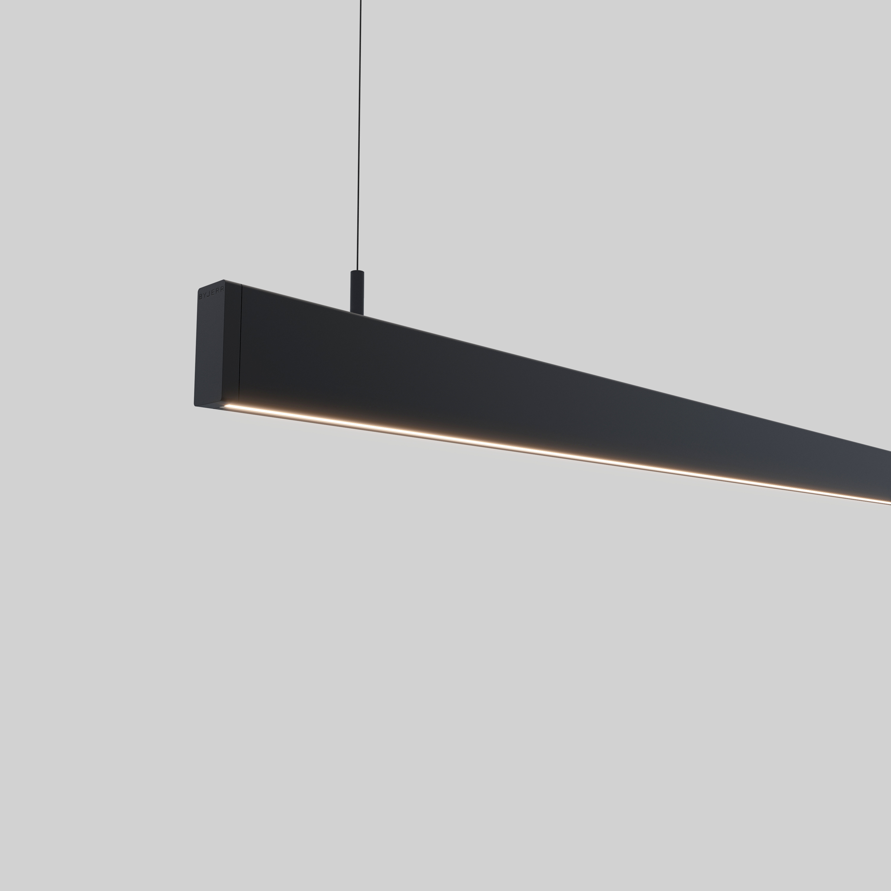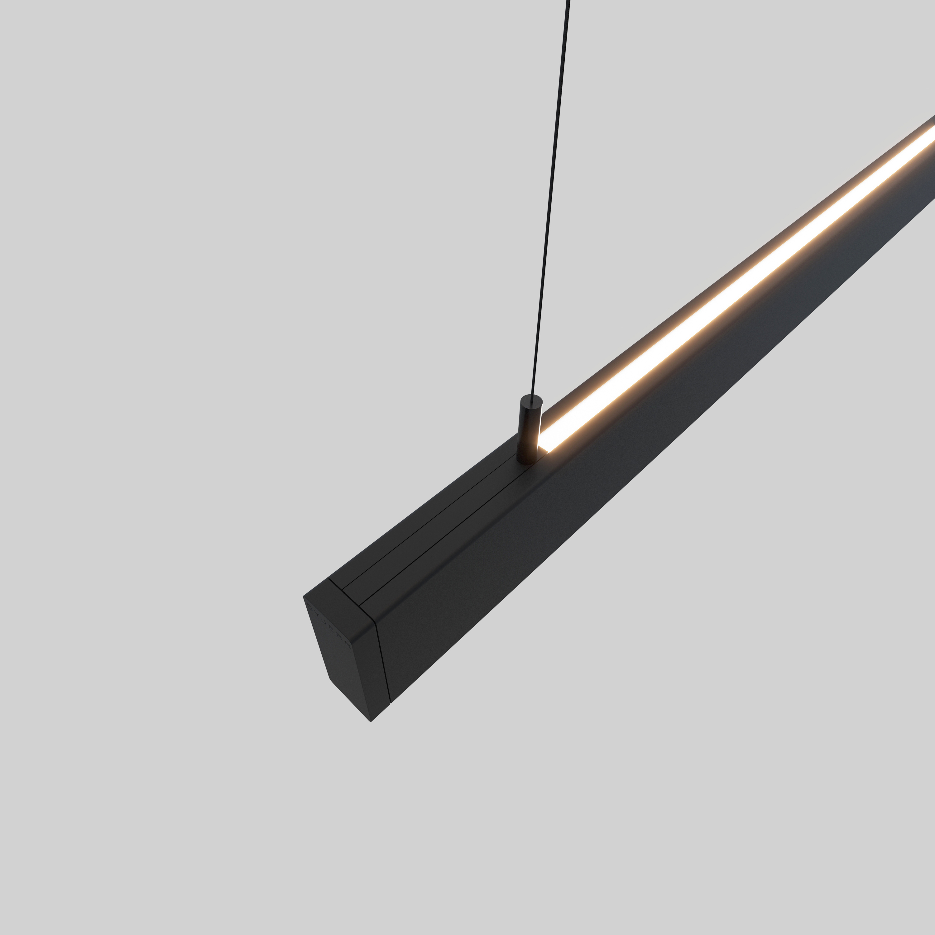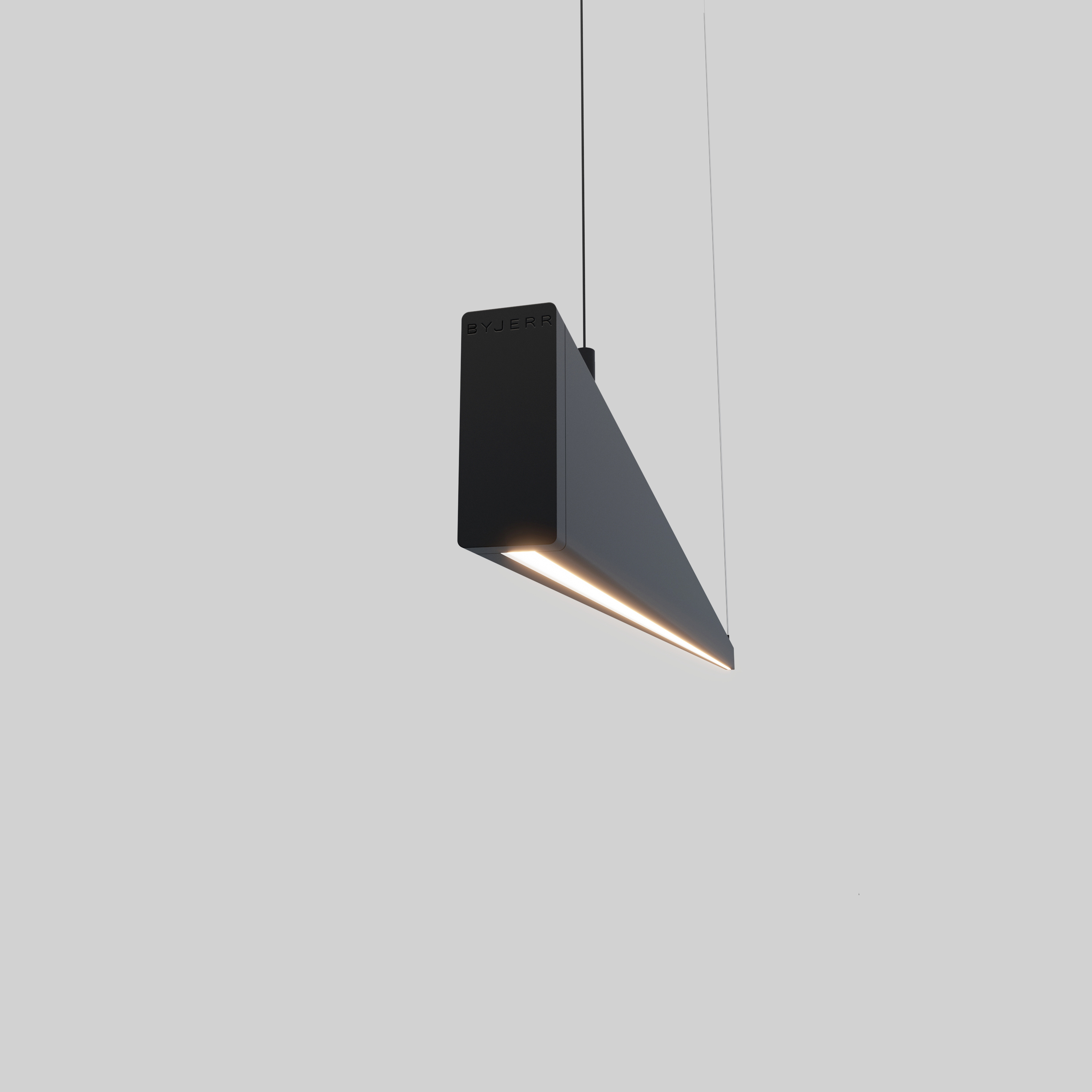 De lamp is vervaardigd uit hoogwaardig aluminium en afgewerkt met een zwarte anodisatie, wat zorgt voor een duurzame en luxe uitstraling. Ook de ophanging is uitgevoerd in zwart en sluit met zijn strakke, minimalistische vormgeving perfect aan op het design van de lamp.