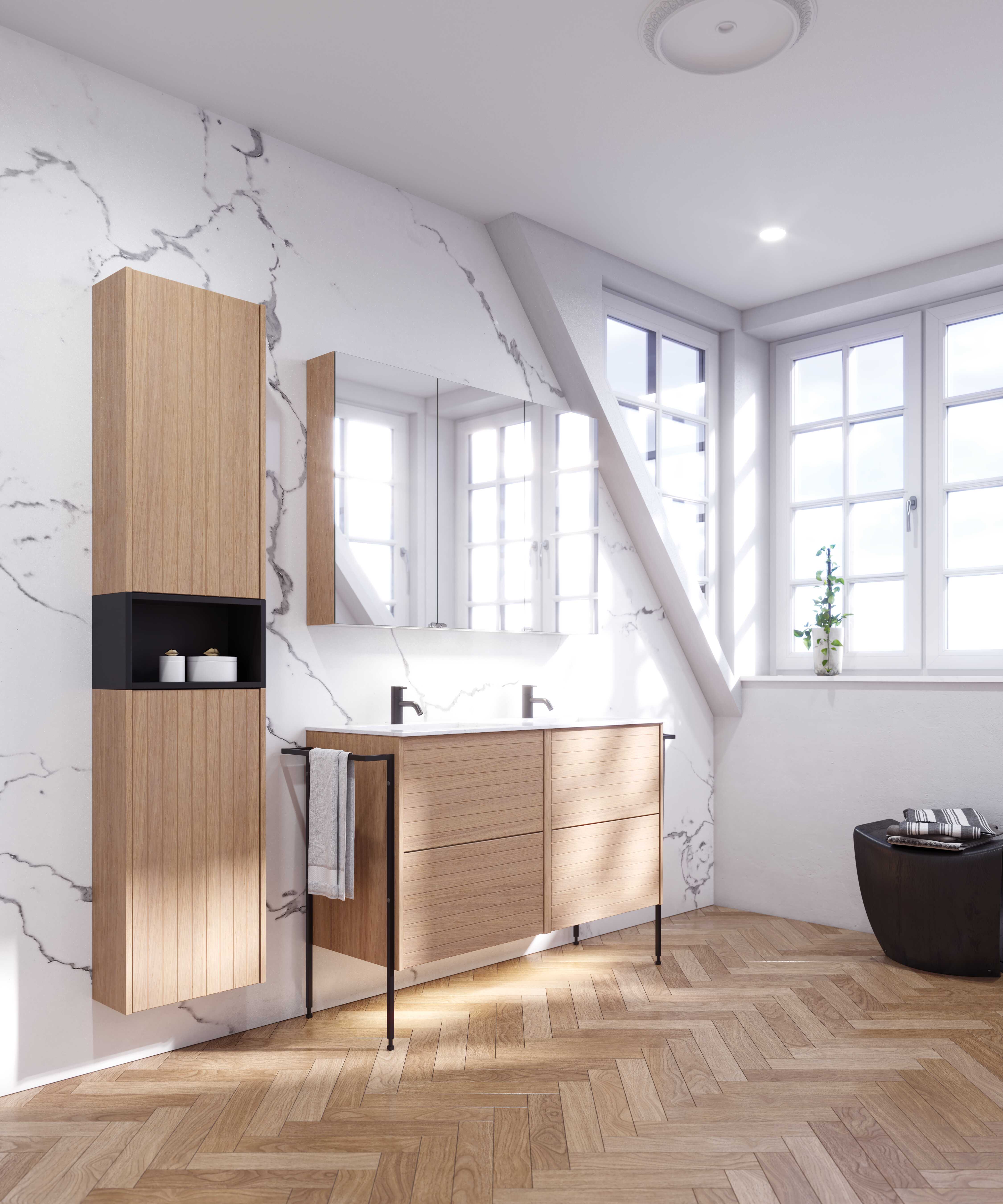 Wat Luna Classic bijzonder maakt, is de subtiele balans tussen klassiek en eigentijds. De toevoeging van poten en een geïntegreerde handdoekhouder geeft het meubel een verfijnde omlijsting, zonder dat het zwaar of nadrukkelijk wordt. Het voelt licht, doordacht en precies goed.