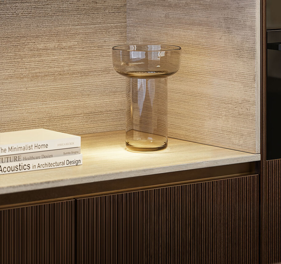 De opstelling is flexibel, net als het leven zelf. Ga je voor een compacte indeling of pak je uit met een eiland als centrale plek om te koken én te kletsen? Alles kan. De donkere bronzen greeplijsten geven het geheel een vleugje luxe, zonder dat het too much wordt. Liever nog wat extra warmte? Dan is het fineer in warm walnoot of puur eiken een fijne upgrade.