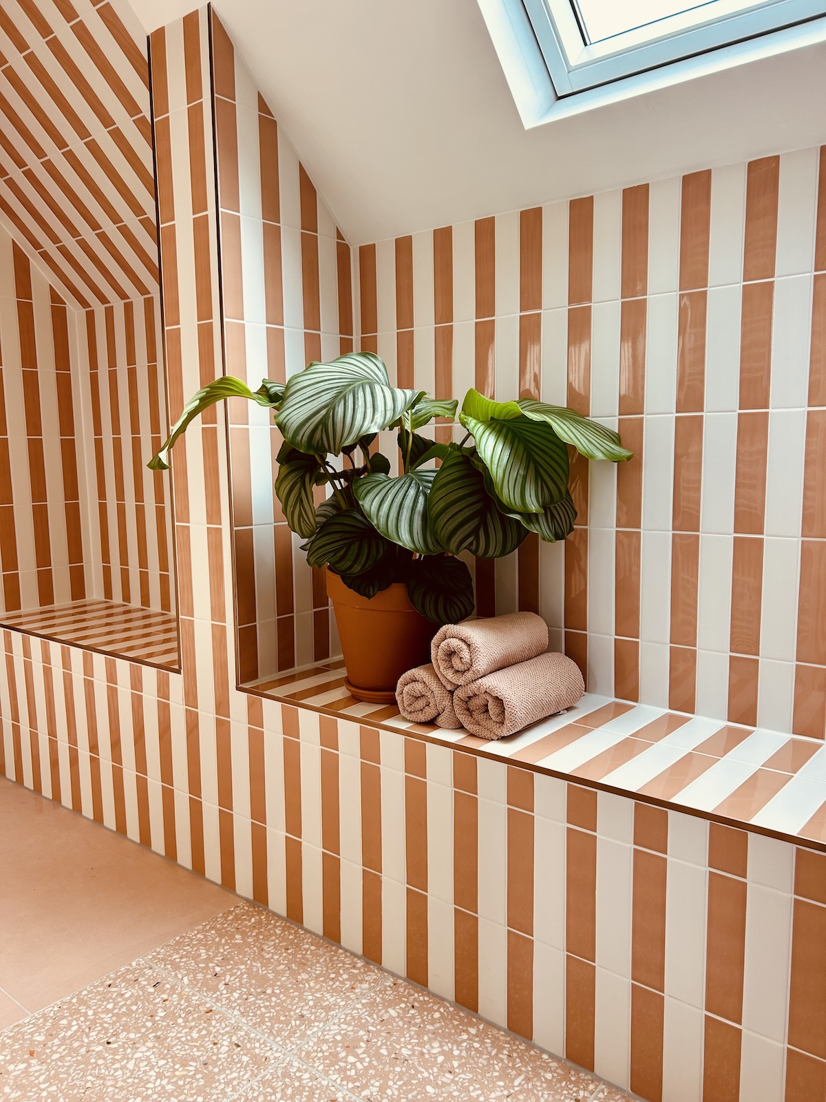 Pure Peach is zo’n tegel die meteen een warm, uitnodigend gevoel geeft aan elke ruimte. Het formaat van 5 x 20 centimeter zorgt voor een speels, ritmisch patroon op de wand, terwijl de dikte van 0,85 centimeter stevig genoeg is voor jarenlang plezier. Door de keramische basis is de tegel onderhoudsvriendelijk en goed bestand tegen het dagelijks leven, zonder dat je er veel omkijken naar hebt.