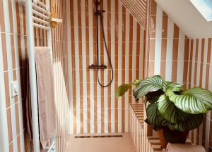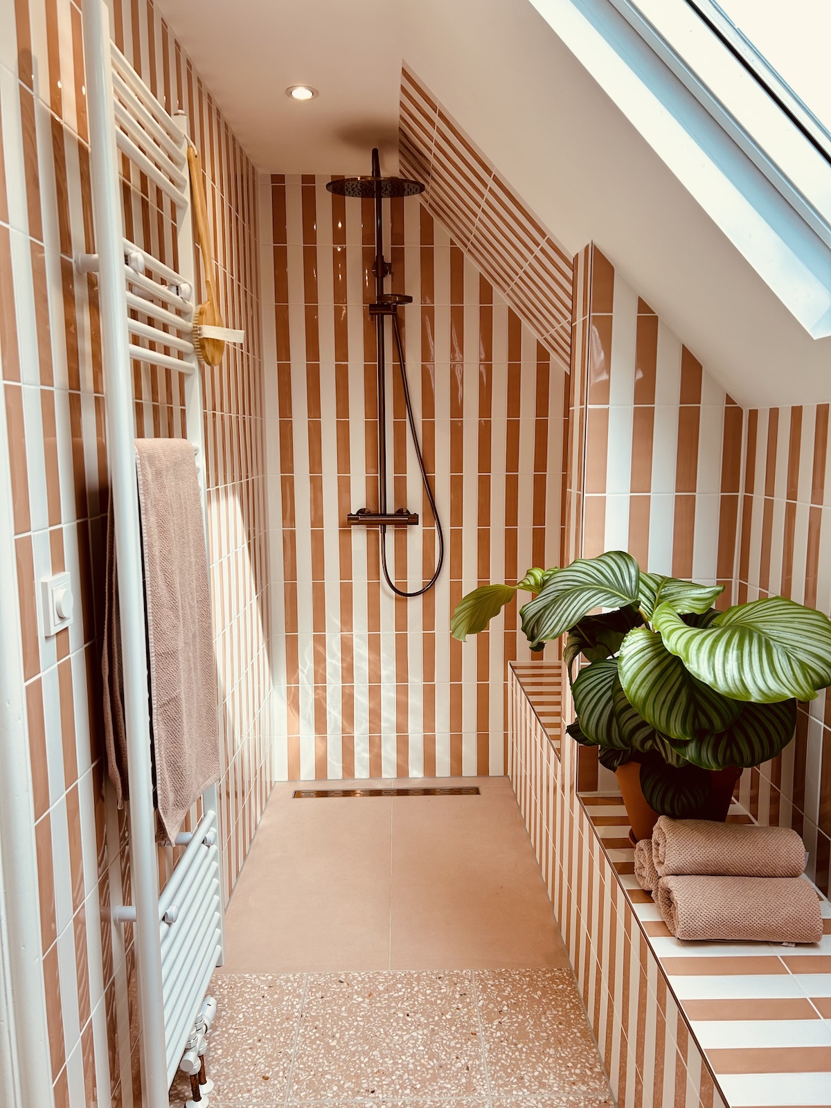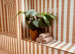 Binnenhuis voelt de Pure Peach zich overal thuis. In de keuken geeft hij een frisse, vrolijke wand achter het fornuis of boven het werkblad. In de badkamer brengt hij een hint van zachtheid en luxe, perfect voor wie graag een sfeervolle plek wil om de dag te beginnen of te eindigen. En ook in het toilet zorgt deze tegel voor een nette, verzorgde uitstraling zonder te overheersen.