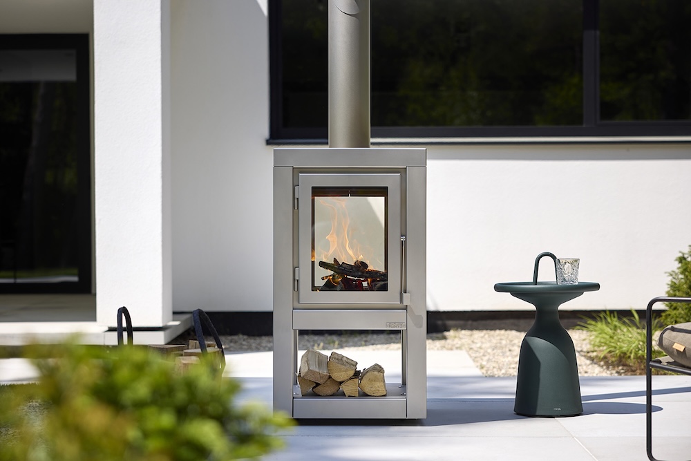 Satin roestvast staal is weerbestendig en roest niet door, maar ontwikkelt met de tijd wel een uniek karakter. Zo wordt je buitenhaard nog mooier met de jaren. Het past perfect bij een strakke of minimalistische buitenruimte, zonder dat het koel of afstandelijk oogt.