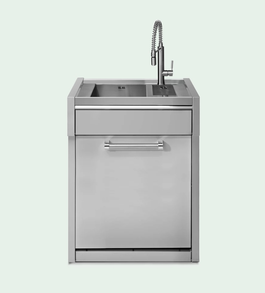 Het ontwerp is strak en functioneel, met een diepe spoelbak en een royale kraan die het buiten koken en afspoelen een stuk eenvoudiger maken. Ideaal voor wie graag kookt in de open lucht en alles binnen handbereik wil hebben. De wasbak is verkrijgbaar in duurzaam roestvrij staal voor een stoere, professionele uitstraling, of in een elegante antracietkleur die mooi aansluit bij moderne buitenopstellingen.