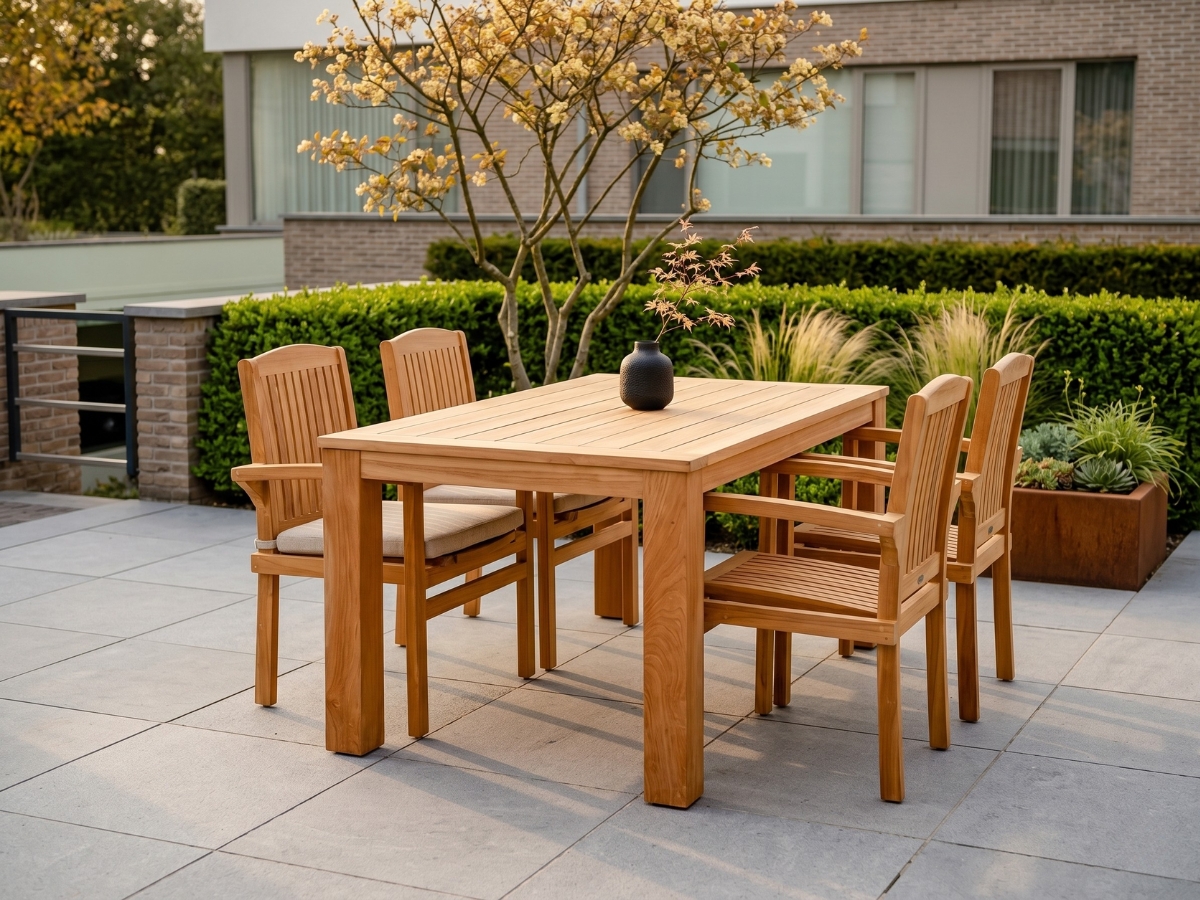 Buiten eten krijgt meteen meer sfeer met een goede tafel. De Nelson tuintafel van Teakea is zo’n tafel die het middelpunt is. Het massieve teakblad zorgt voor een stevige basis en geeft de tuin een natuurlijke, rustige uitstraling. Of er nu snel wordt geluncht of uitgebreid wordt gedineerd, deze tafel kan het allemaal aan.