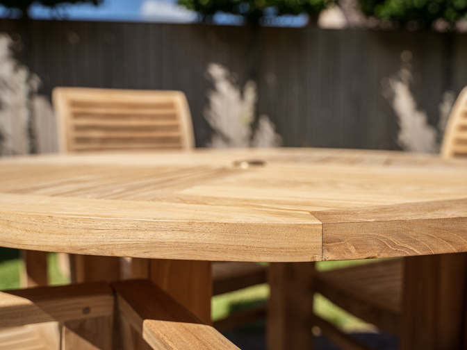 Gemaakt van hoogwaardig teakhout, combineert deze set stevigheid met een warme, natuurlijke uitstraling. Teakhout kan tegen een stootje en blijft mooi, of het nu volop in de zon staat of een regenbui meepakt. De stoelen zitten niet alleen heerlijk, maar zijn ook praktisch: je klapt ze in als je ruimte nodig hebt, ideaal voor een balkon of een kleiner terras.