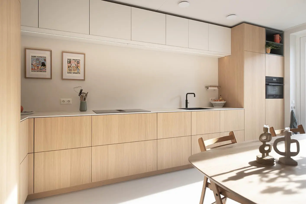 In Rotterdam realiseerde Kitchenstudio een wandkeuken in natuurlijk eiken. Het ontwerp is gemaakt door interieurarchitect Wieke Walmink en uitgevoerd door Kitchenstudio. De keuken is geleverd door Ballerina. Het project kenmerkt zich door een heldere opzet waarin rust, maatvoering en materiaalgebruik centraal staan.
