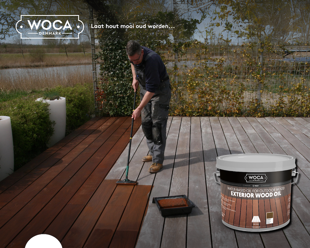 De olie is in 16 kleuren beschikbaar, waardoor er altijd een tint is die bij jouw stijl past. Het aanbrengen is eenvoudig en de olie droogt snel, zodat het project binnen no-time afgerond is. Van terrassen en schuttingen tot tuinmeubels en gevelbekleding; WOCA Exterior Oil biedt een betrouwbare bescherming voor al het hout in de buitenlucht.