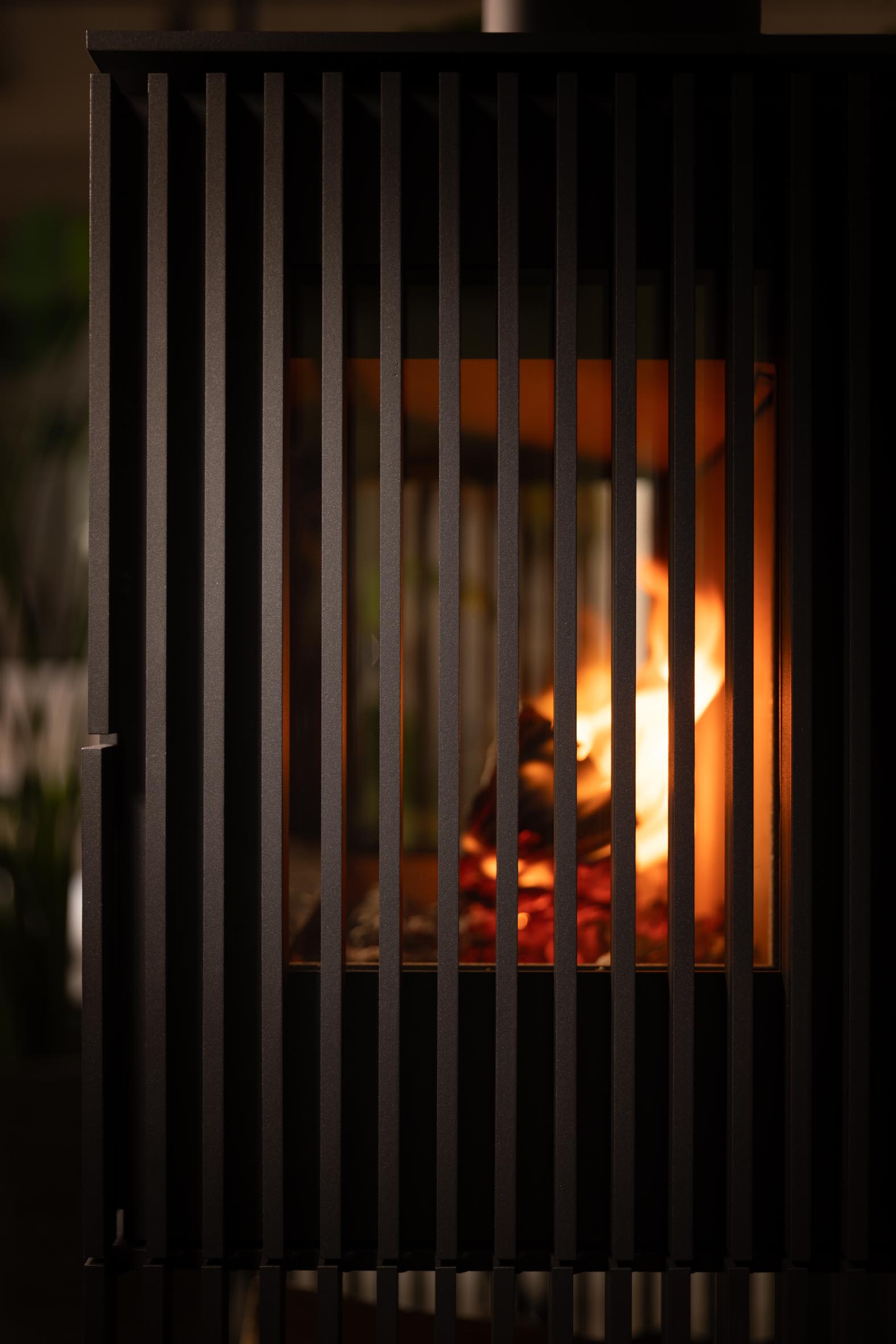 Deze kachel is meer dan een warmtebron: het is een stijlvolle toevoeging aan het interieur die sfeer en beleving naar een hoger niveau tilt. Het ontwerp valt op door de elegante ribbelstructuur aan de zijkanten. Deze subtiele rillen zorgen niet alleen voor een extra laag in het design, maar weerspiegelen ook het dansende vlammenspel. Het resultaat is een levendig effect waarin warmte en beweging samenkomen.