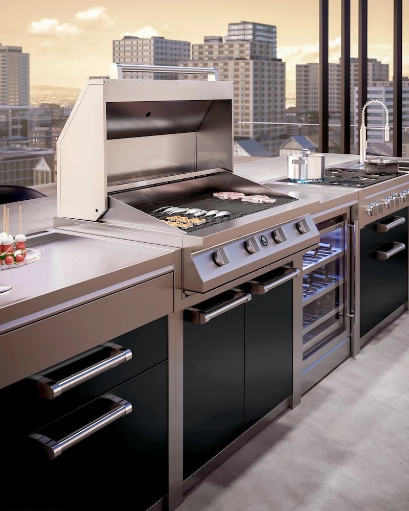 De Steel Cucine worktable is de ideale basis voor een buitenkeuken of barbecuezone. Verkrijgbaar in breedtes van 45 tot 120 cm, waardoor hij in elke buitenruimte past — van compact balkon tot royale tuin. Het ontwerp is strak en tijdloos, met ruime werkbladen en handige opbergruimtes die koken en serveren buiten een stuk makkelijker maken.