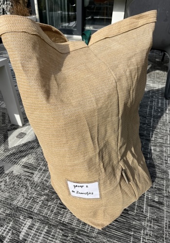 Deze tas is lokaal geproduceerd bij naaiatelier Revive in Ede, waar mensen met een afstand tot de arbeidsmarkt werken aan dit 100% duurzame en sociale product.