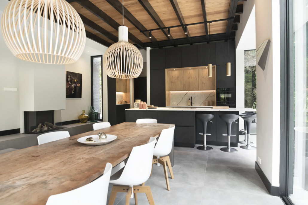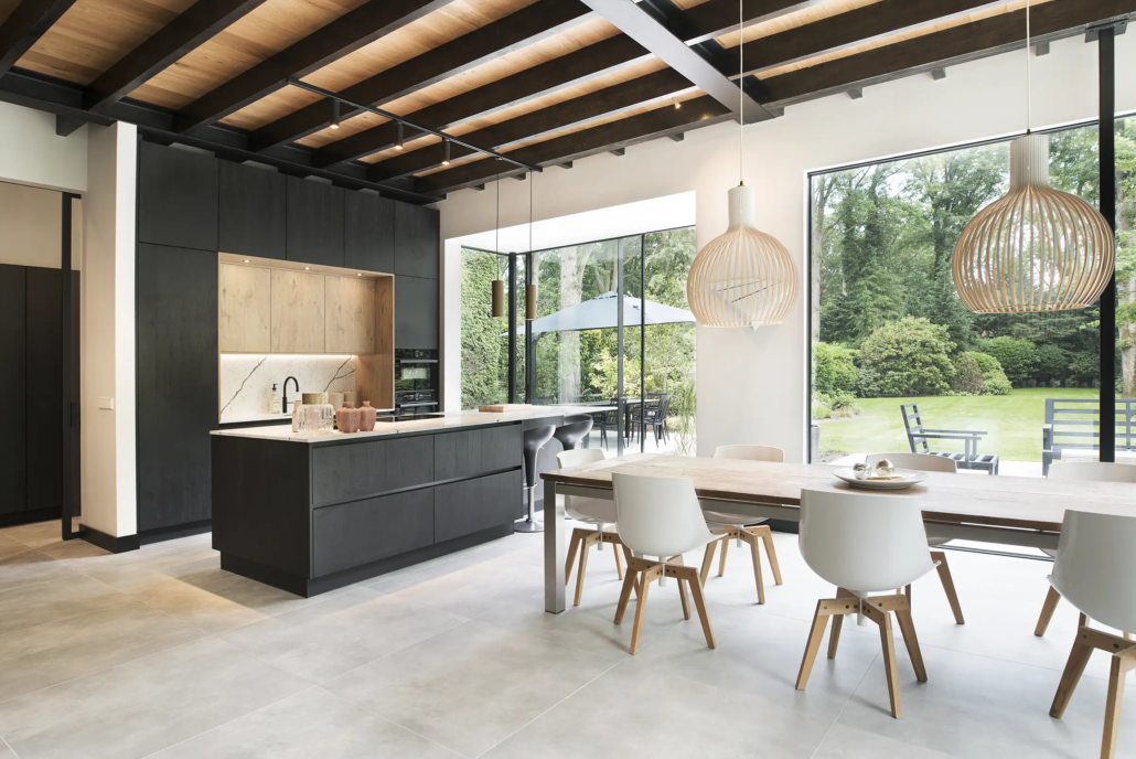Deze keuken vormt het hart van een vrijstaande villa in Wassenaar. Het ontwerp laat zien hoe koken, wonen en samenzijn samenkomen in één open leefruimte. De keuken is krachtig vormgegeven en sluit vanzelfsprekend aan op de architectuur van de woning.